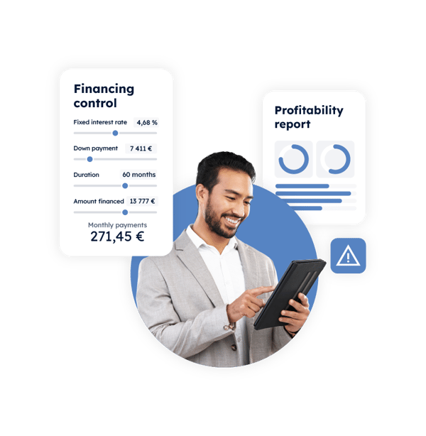 Financing management with credalis can be accessed directly from your myrentcar dashboard. Financial data will also appear in your vehicle files.